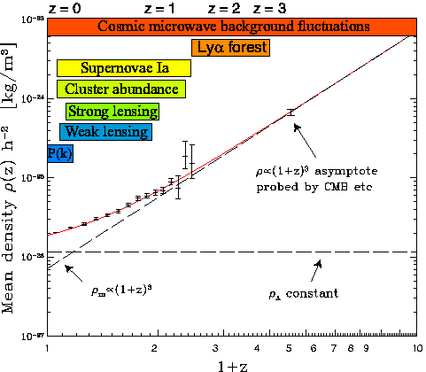 Redshift range over which upcoming observations may probe the cosmic density.