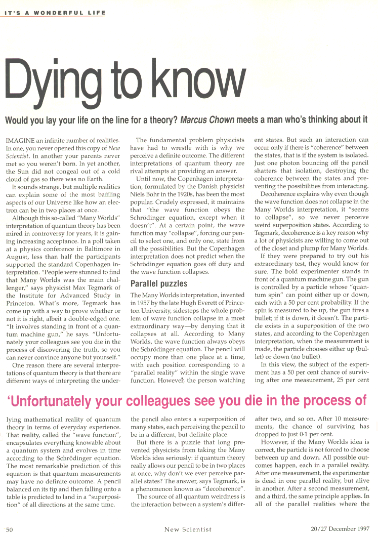 When Everett's theory as it celebrated its 50th anniversary in 2007, Nature invited me to write an